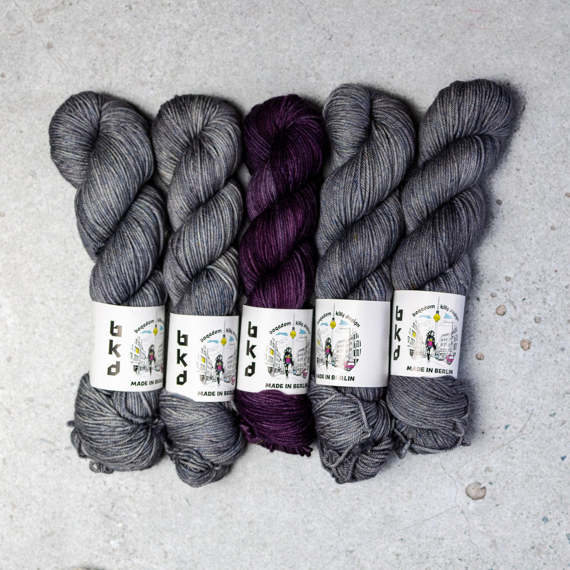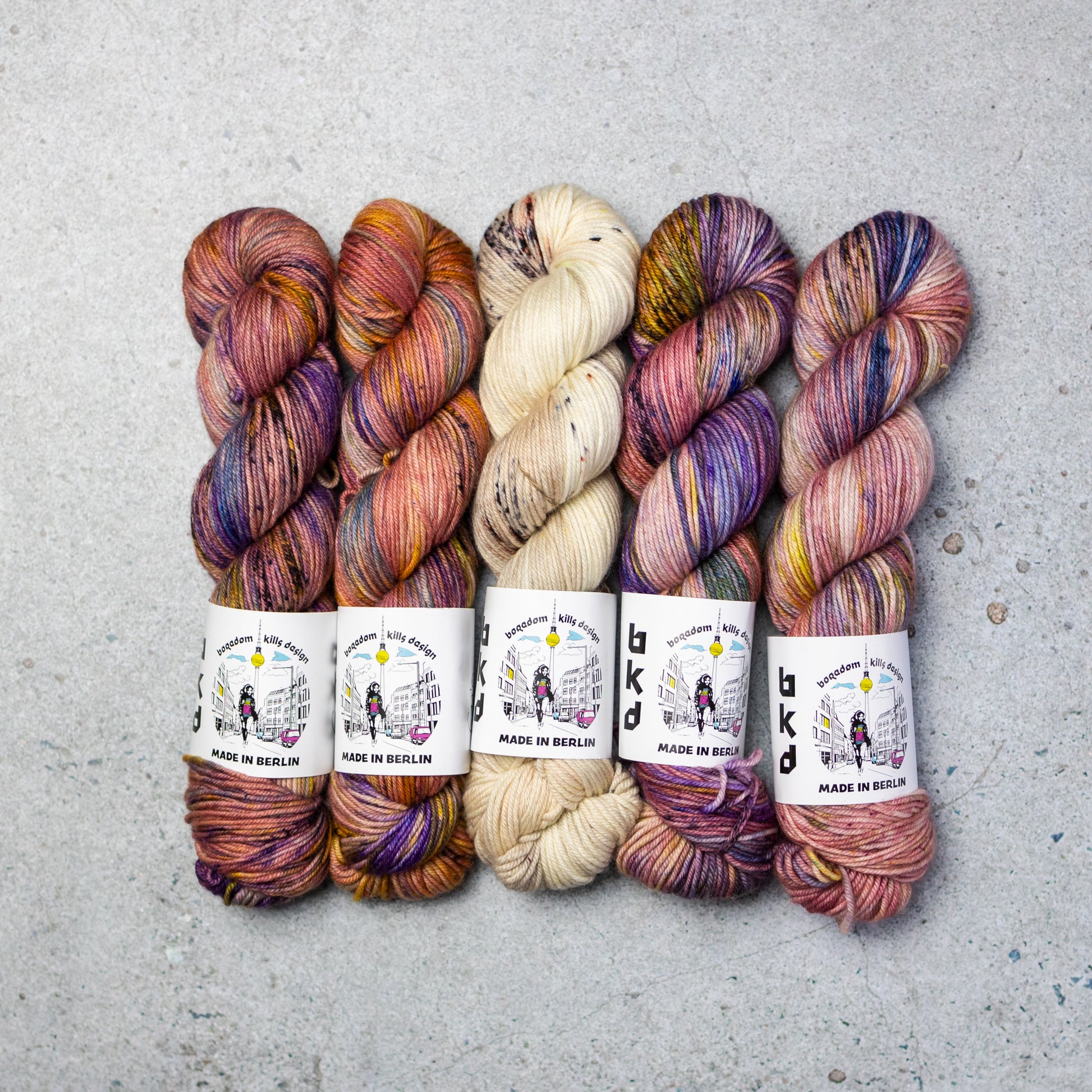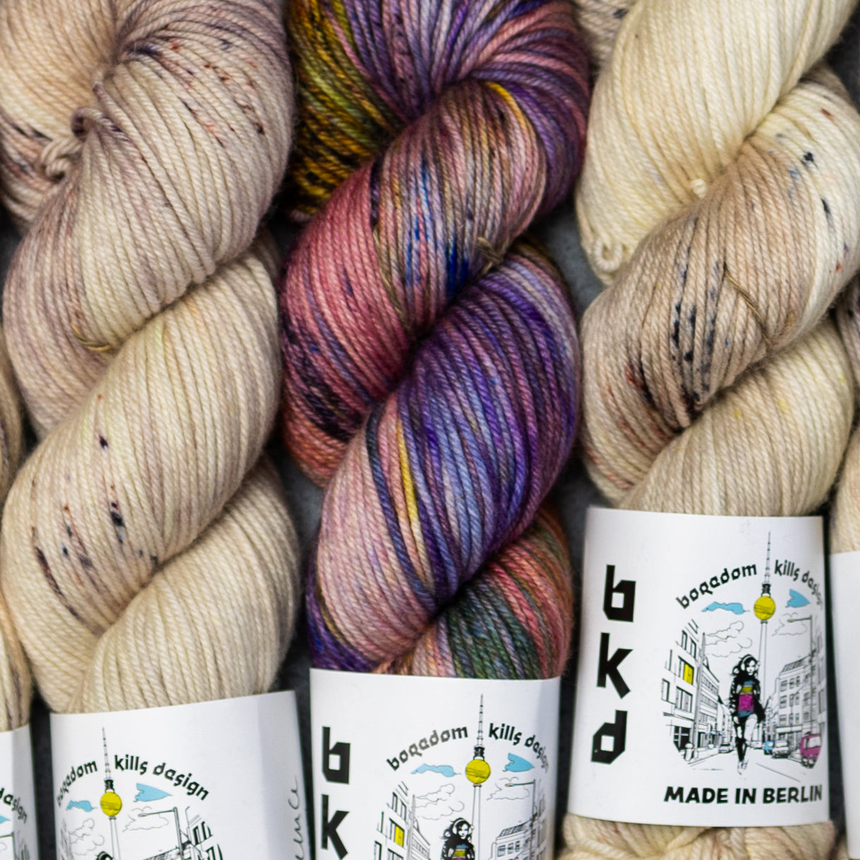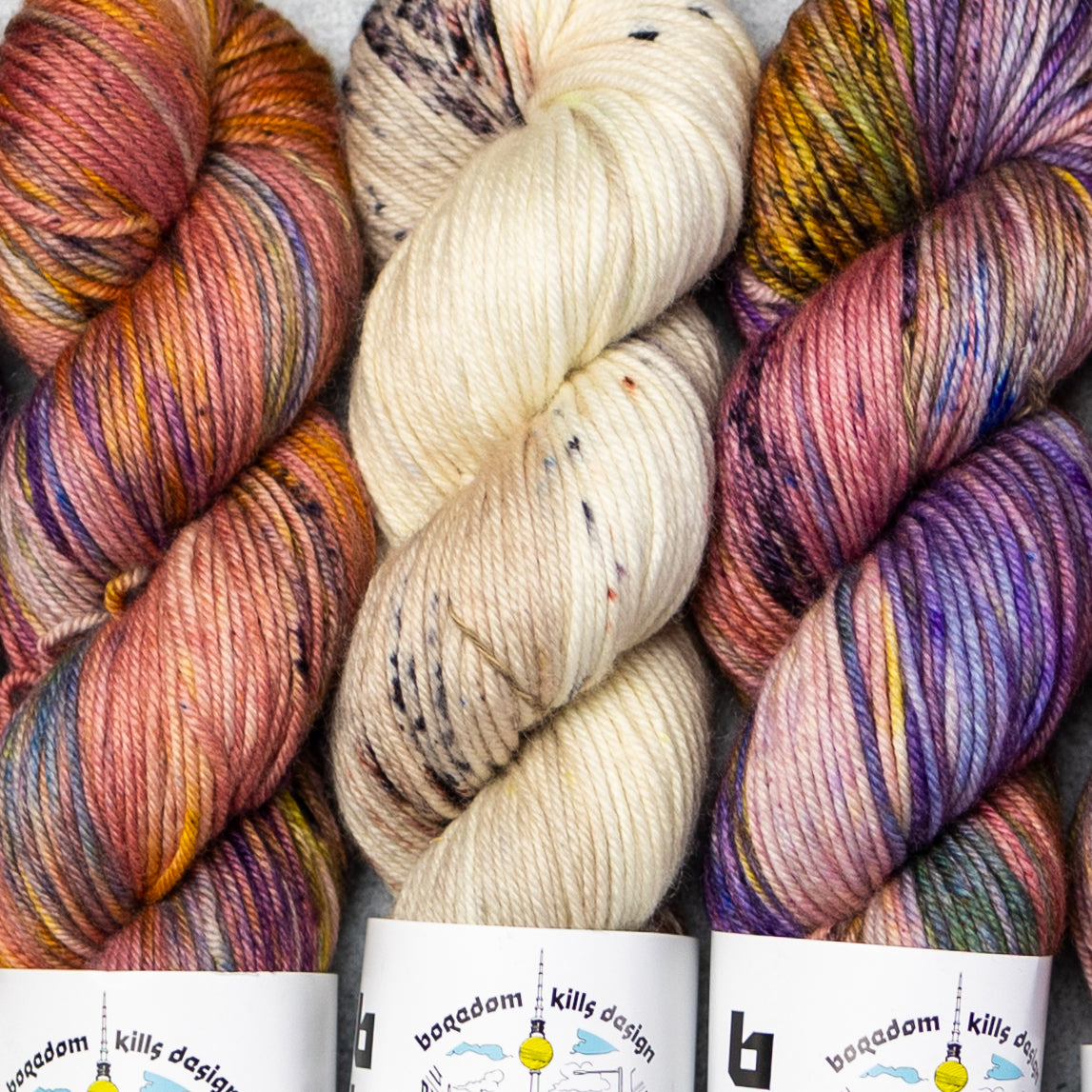 Yarn Kit for a knitted sweater designed by Marija Korać in BKD Wonder DK hand dyed merino yarn base. In her own words: