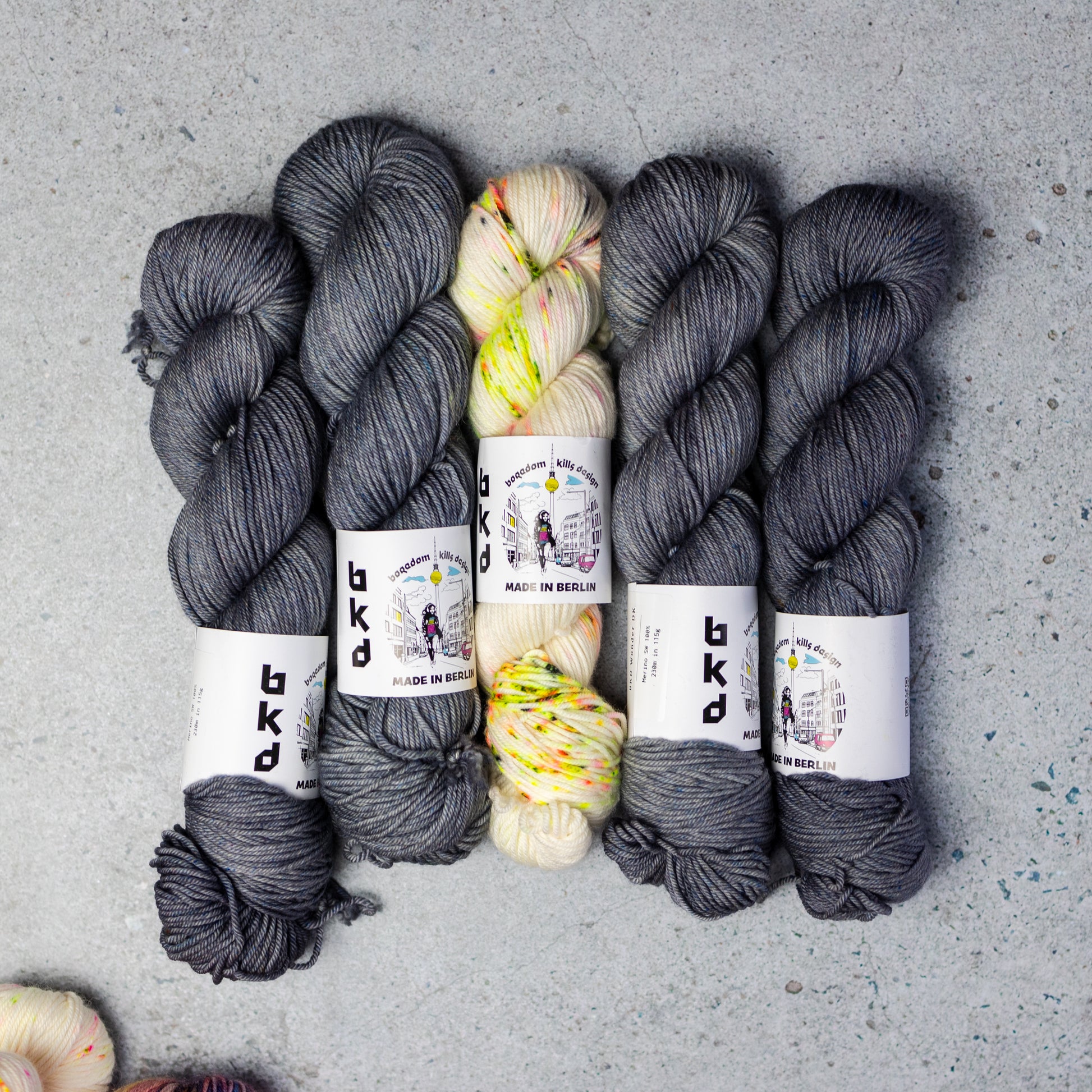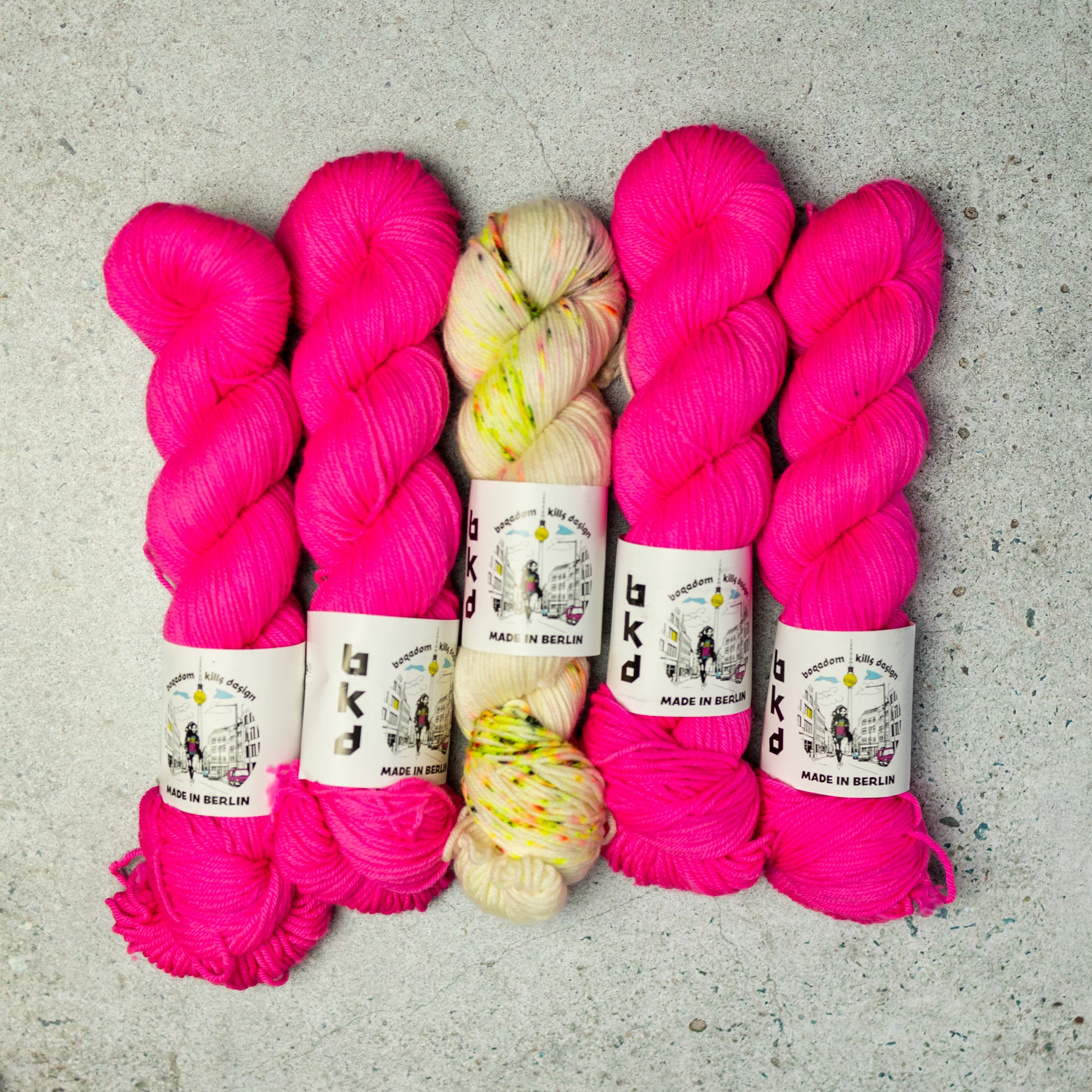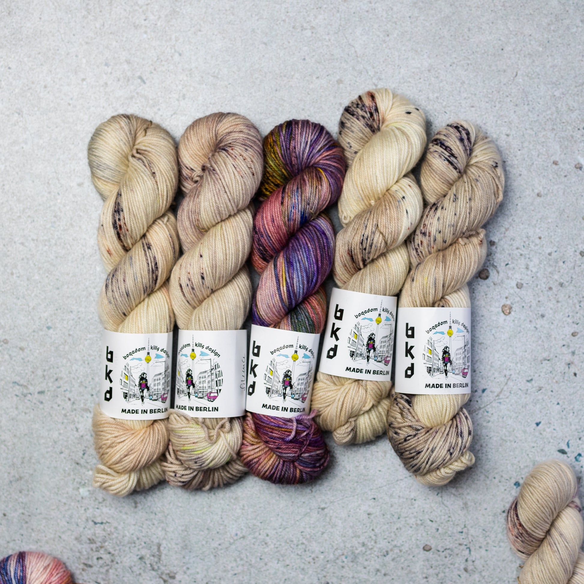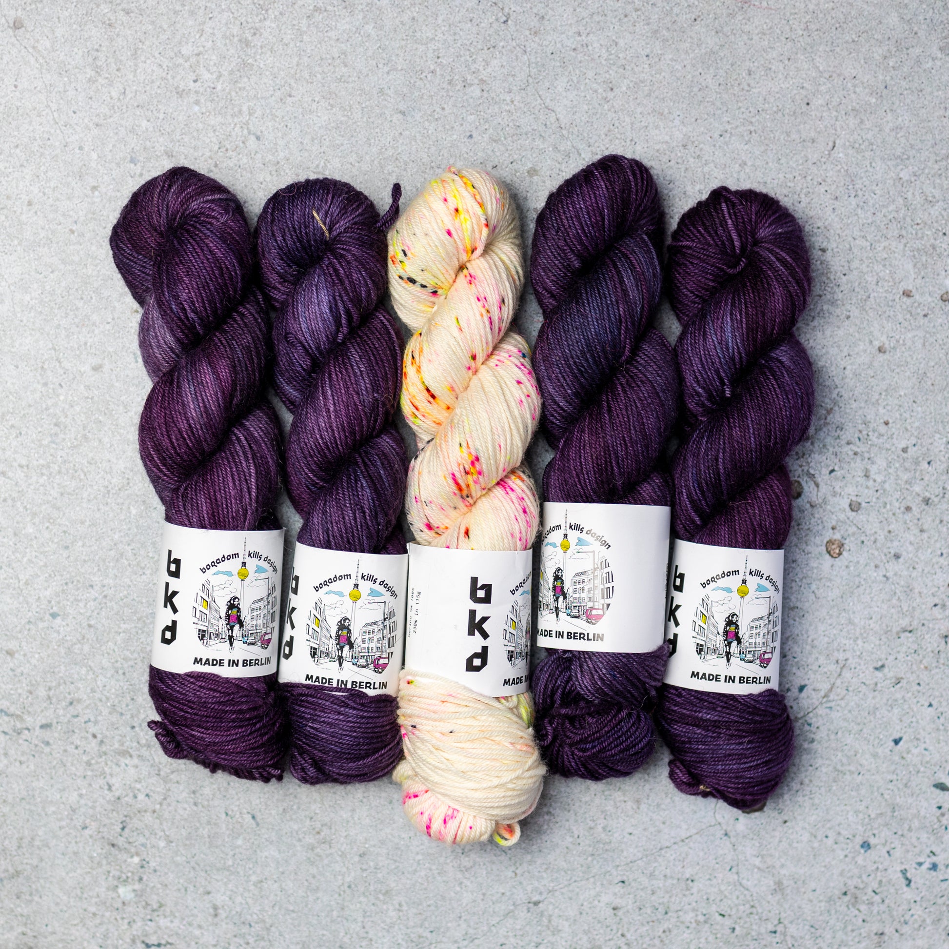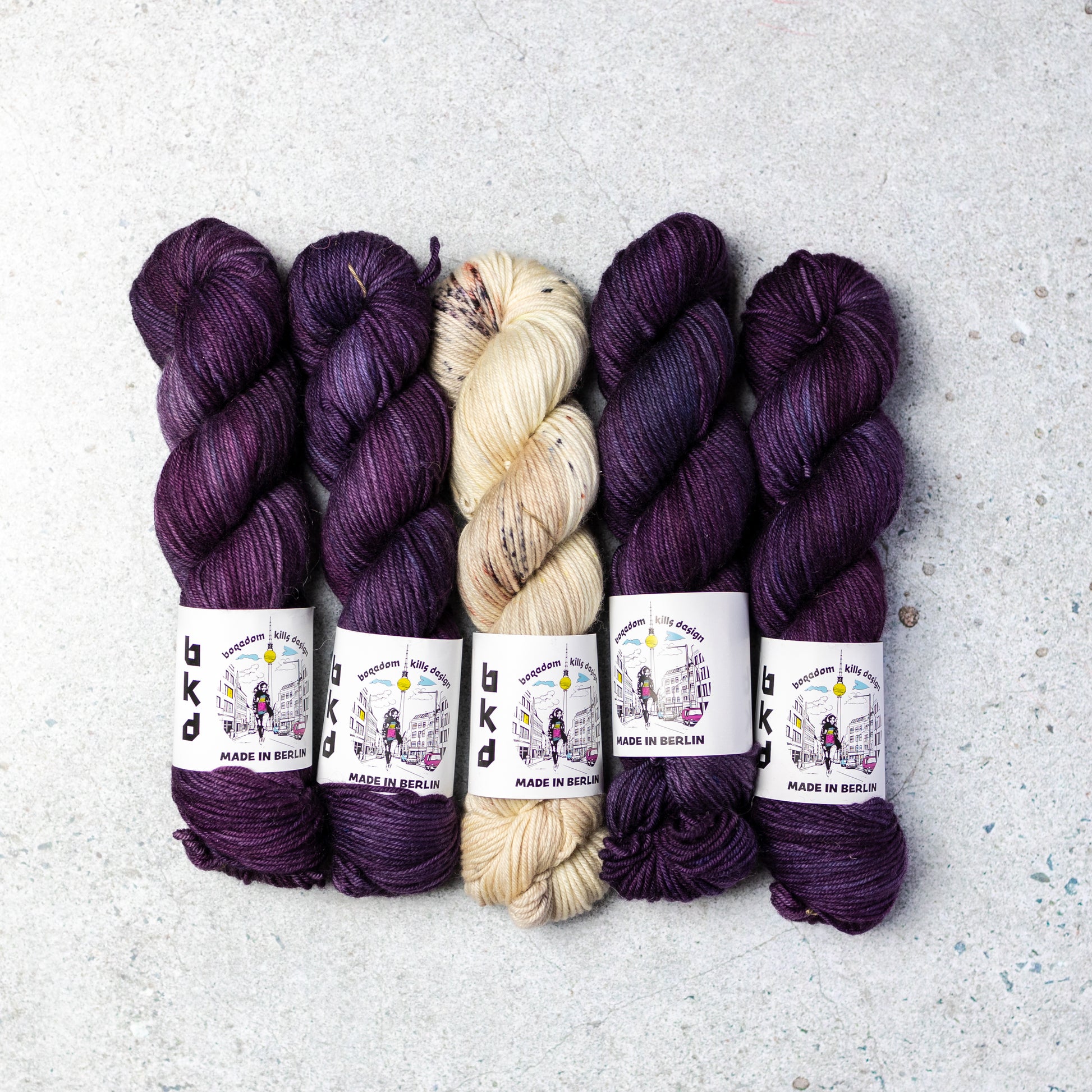 Yarn Kit for a knitted sweater designed by Marija Korać in BKD Wonder DK hand dyed merino yarn base. In her own words: